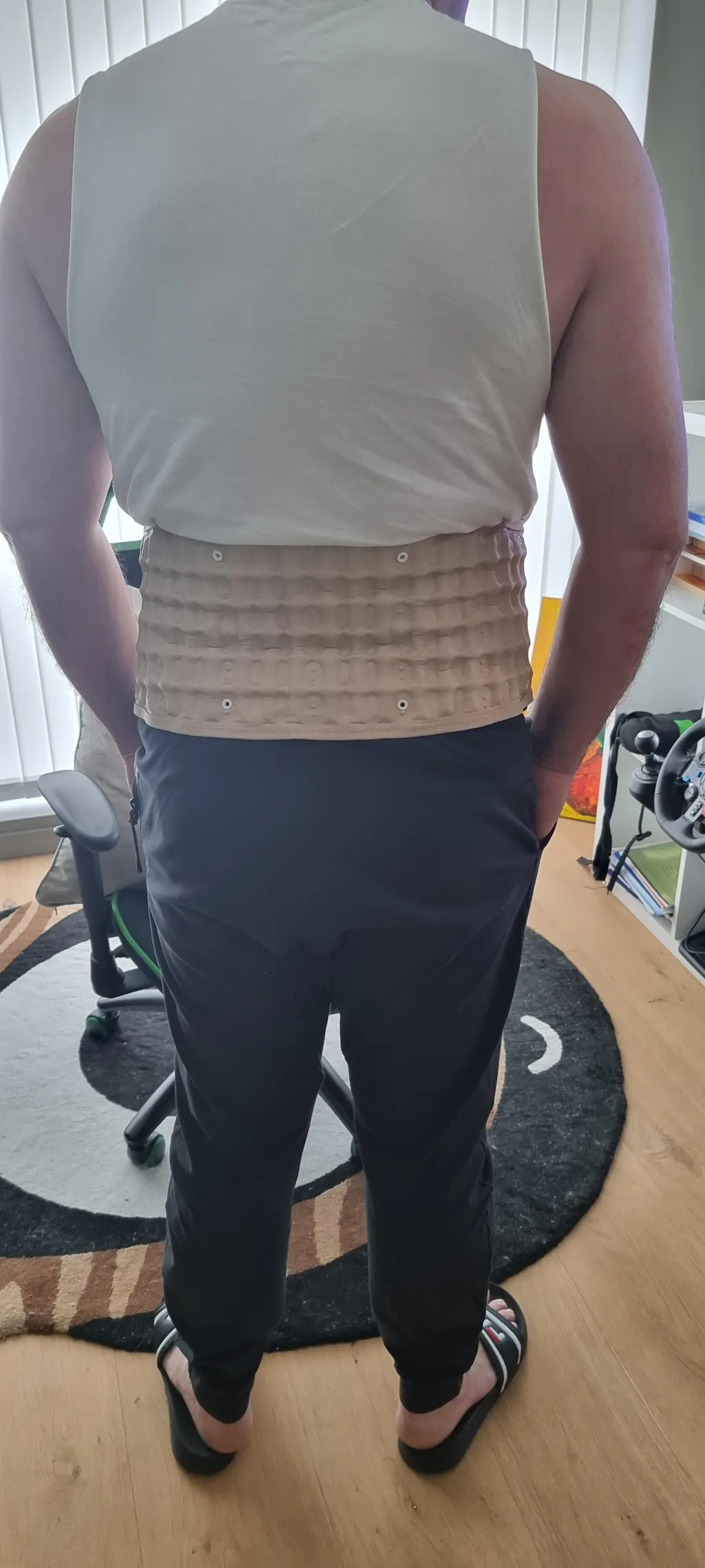 - Ryggbeltet blåses opp med luft og gir ekstra støtte til korsryggen. Den milde trekkraften kan bidra til en følelse av avlastning i korsryggen og støtte en bedre kroppsholdning, noe som kan hjelpe med å redusere ubehag hos brukere.